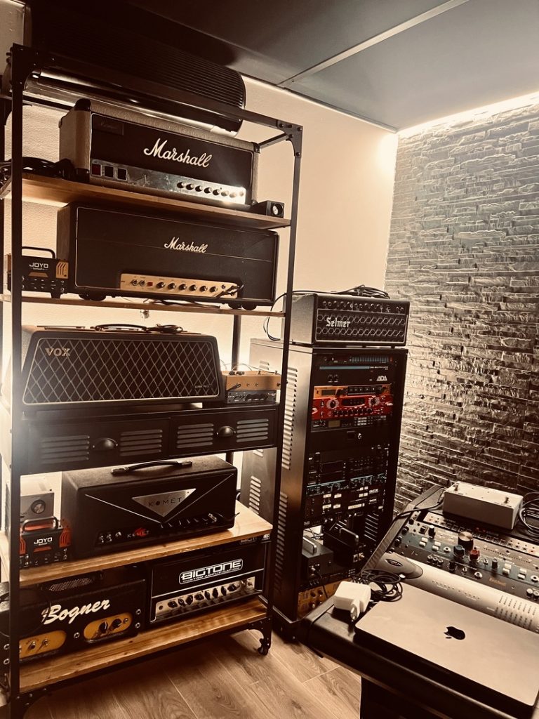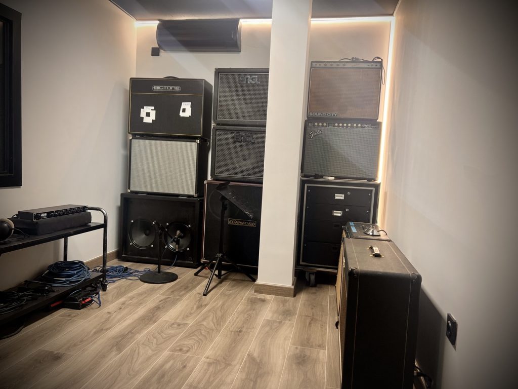 Todo tipo amplificadores de guitarra tantos modernos como vintage, decenas de pedales, todos tipo de altavoces para sonidos modernos o vintage: Marshall, Fender, Vox, Komet, Bigtone, Bogner, Selmer, Fractal audio, Joyo, etc…